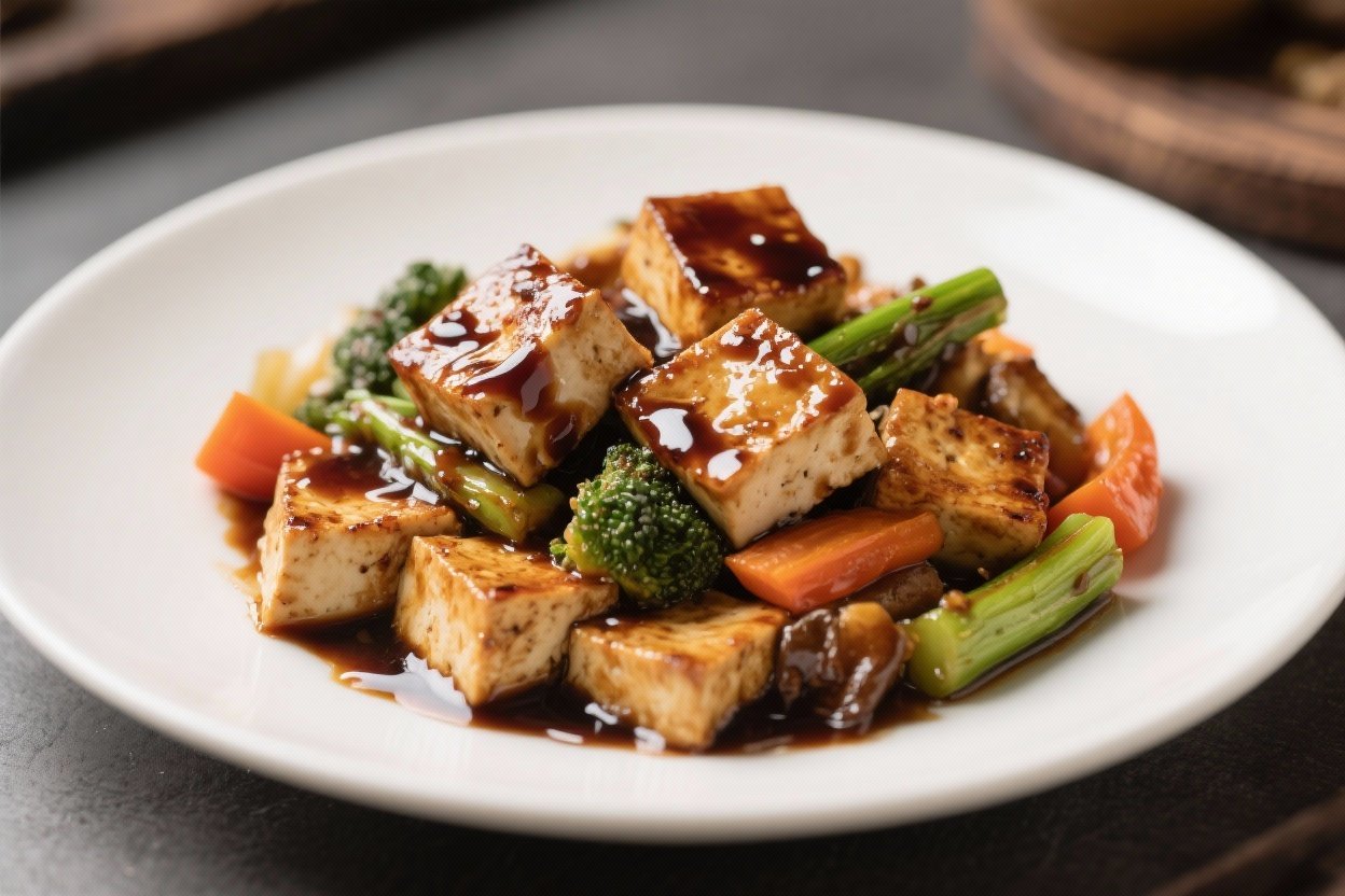 - Pan-seared version: Sear tofu cubes in a nonstick skillet until golden, sauté the veggies, then pour in the glaze and simmer until coated.