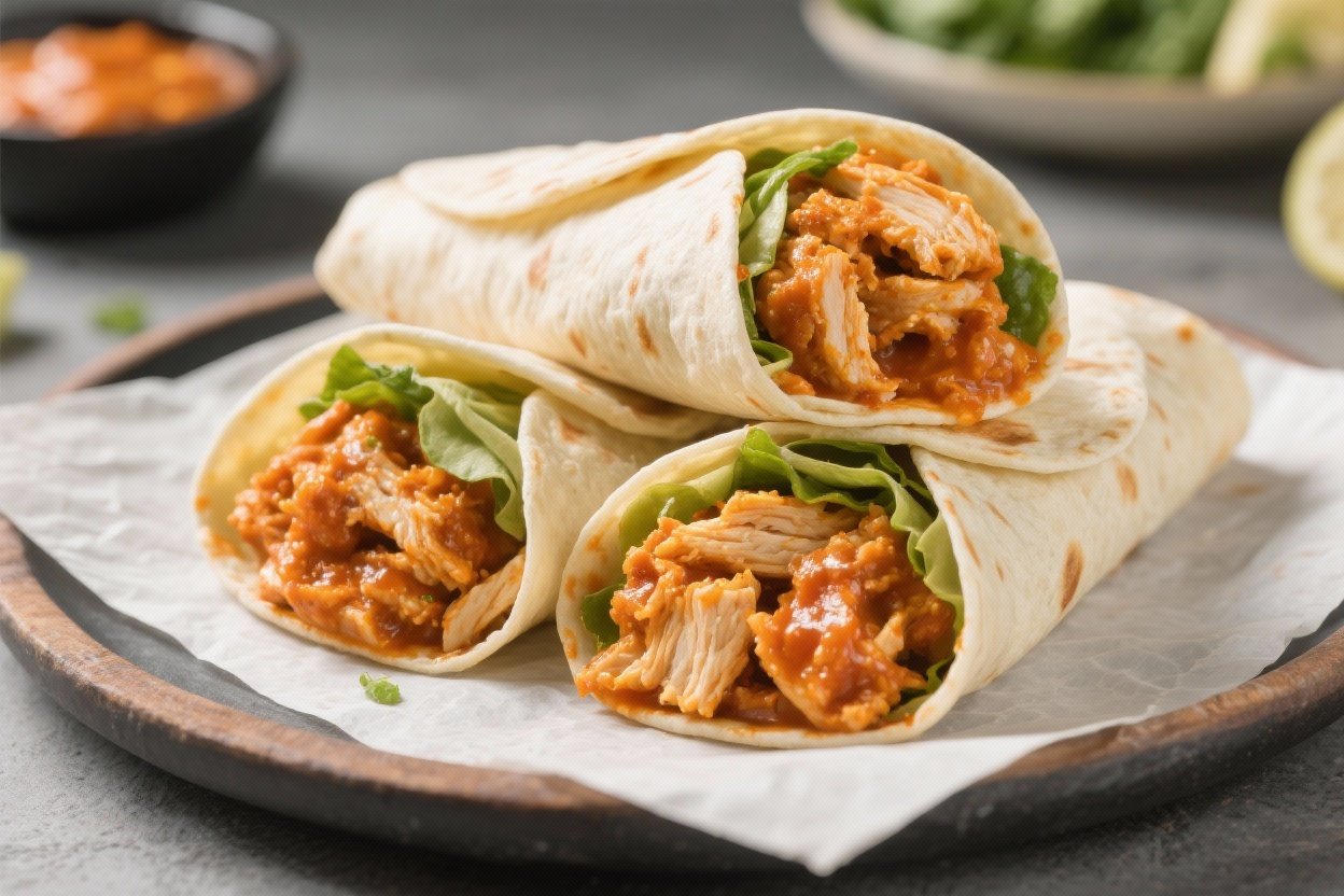 - Grilled Buffalo Chicken: Marinate raw chicken in buffalo sauce for 30 minutes, grill, slice, and build the wrap. Smoky and juicy.