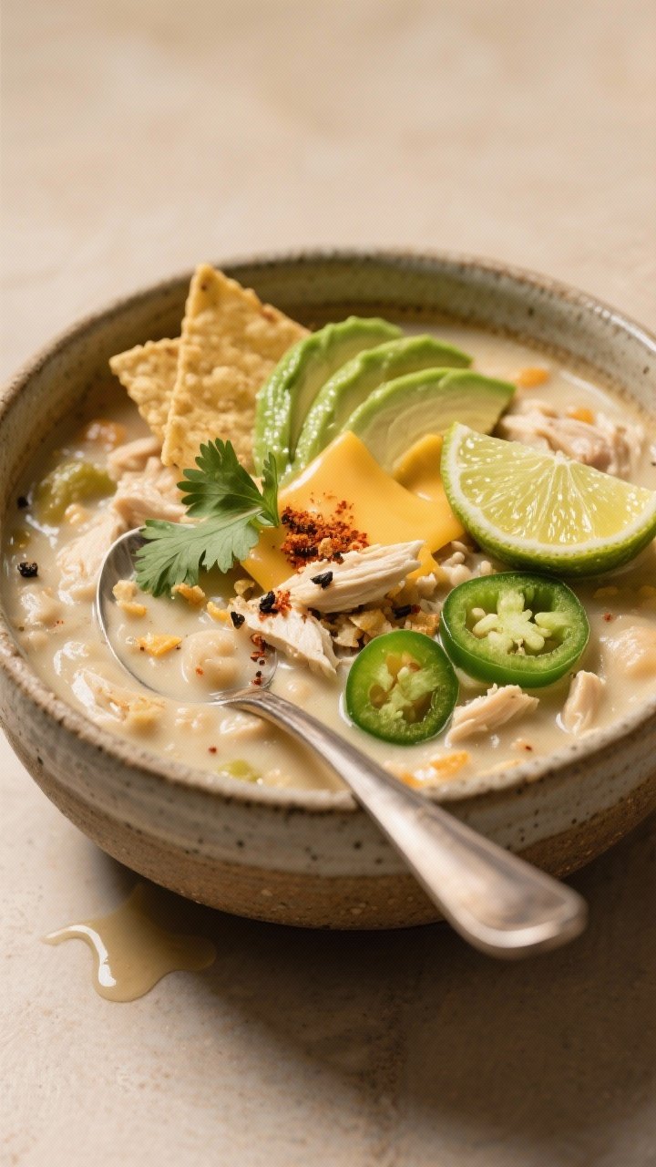 Slow-cooking chicken breasts with green chiles, aromatics, and spices lets everything mingle into a rich, savory base that doesn’t need babysitting. Then, at the end, you stir in cream cheese and a splash of lime to make it silky and bright. That combination—spiced broth plus creamy finish—is why this chili feels restaurant-level fancy with “set-it-and-forget-it” effort.