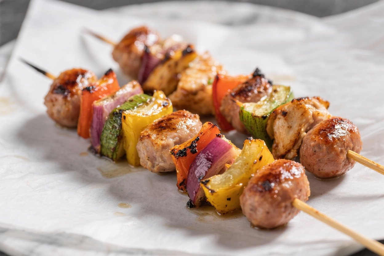 - Skewer like a pro: Alternate sausage with veggies: pepper, sausage, zucchini, onion, mushroom, tomato, repeat.