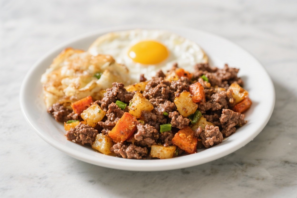 If your mornings feel like chaos on a timer, this hash is your new unfair advantage. Crispy potatoes, juicy ground beef, jammy eggs, and a flavor bomb of spices—all in one skillet, no fluff, no fuss. It’s the kind of breakfast that makes coffee nervous because suddenly it’s not the main event.