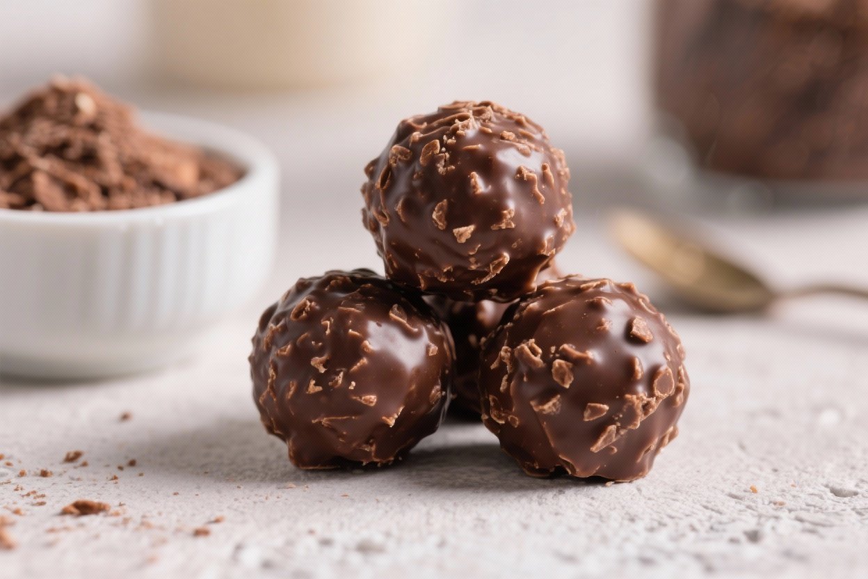 The sweetness comes from dates and a touch of maple—clean, simple, not cloying. Cocoa powder adds intense chocolate flavor without extra sugar, while nut butter binds the mix and boosts satiety. Rolled oats add texture and slow-digesting carbs, so one ball actually does something.