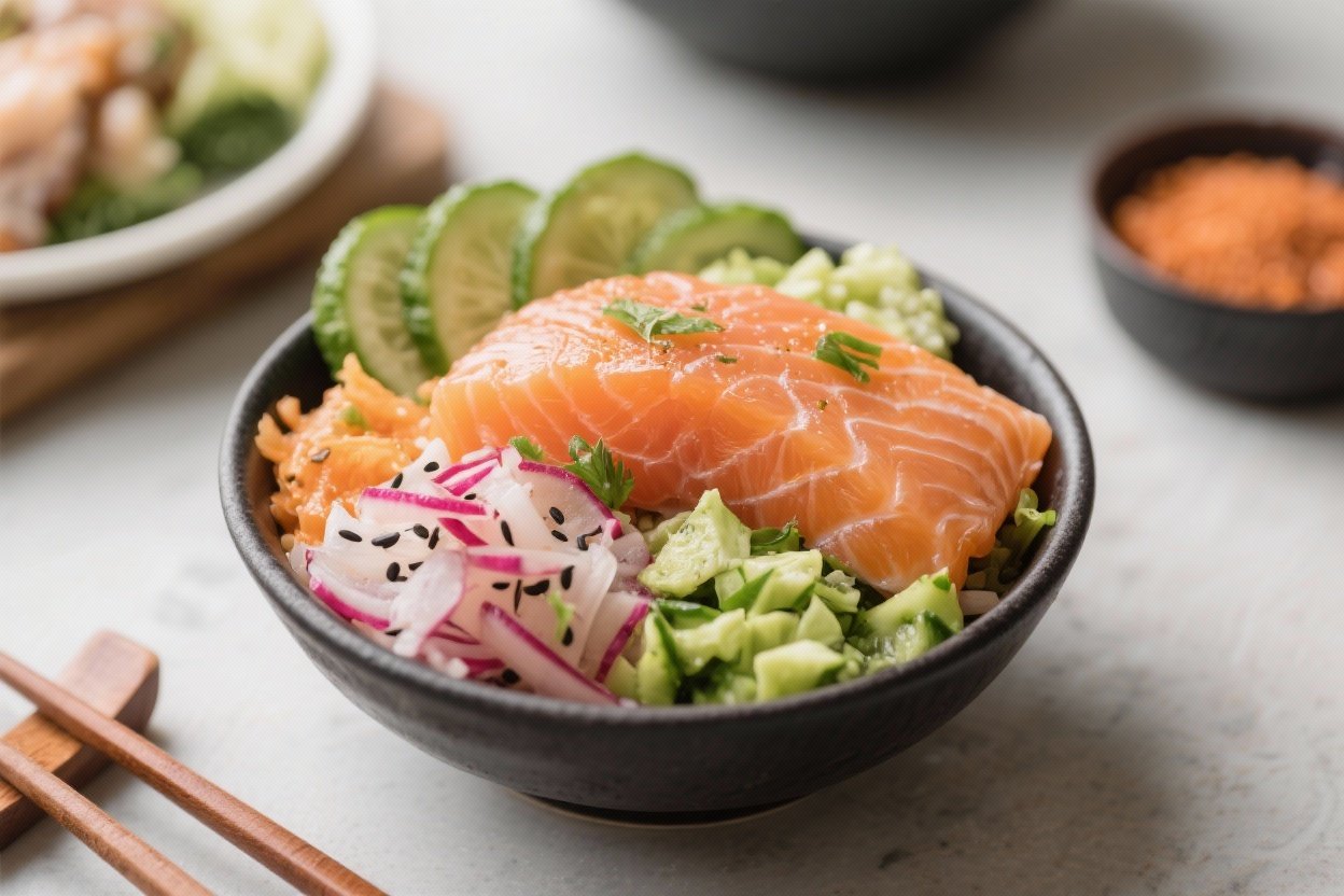 This salmon poke bowl focuses on balance: lean protein, smart carbs, healthy fats, and plenty of fiber. The marinade boosts flavor without a heavy, sugary sauce.