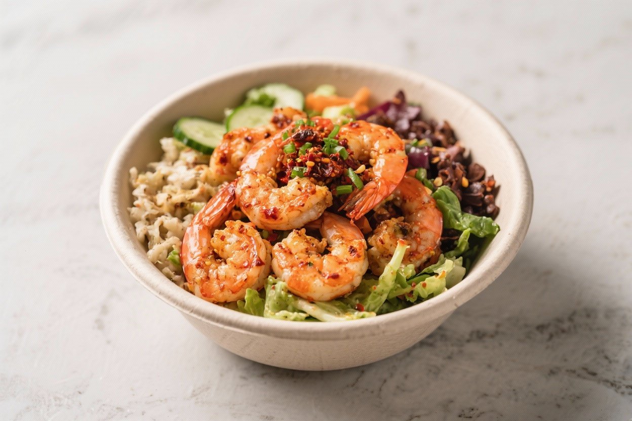 High protein and balanced: Between the shrimp and the base, you get a satisfying bowl that keeps you full.