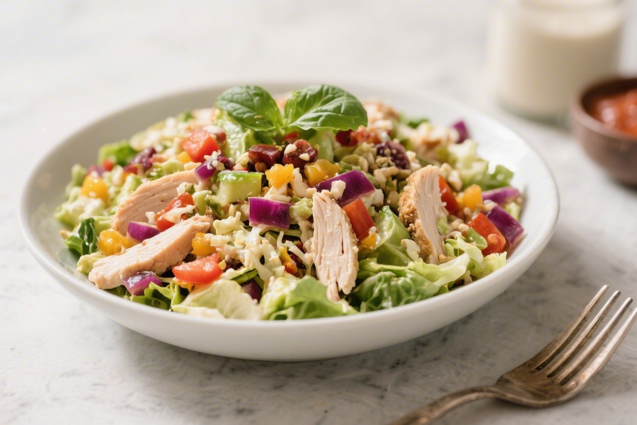 This salad hits the sweet spot between flavor and function. You get lean protein from chicken and black beans, plus fiber from corn and greens to keep you full. The creamy Greek yogurt dressing adds richness without loading up on calories.