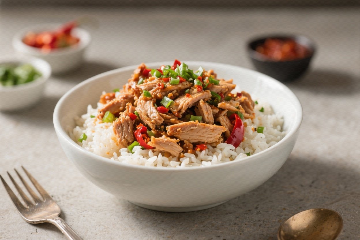 This is the kind of meal you make once and keep craving all week. Ground turkey, chili heat, and garlicky sauce come together over a bed of fluffy rice for a bowl that’s simple, filling, and loaded with flavor. You get the kick from spices, the crunch from fresh veggies, and a creamy finish if you add a little yogurt or avocado.
