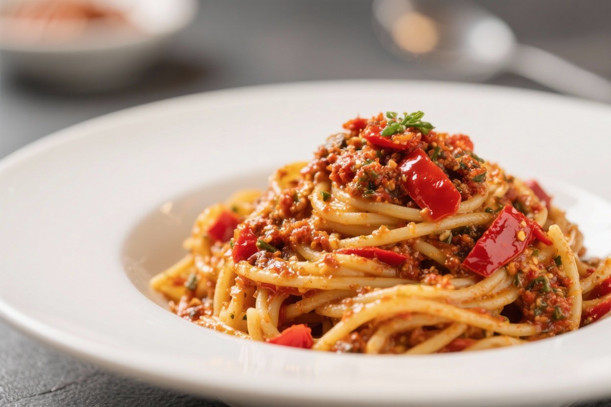 Roasted Red Pepper Pesto Pasta – Bright, Creamy, and Weeknight-Friendly