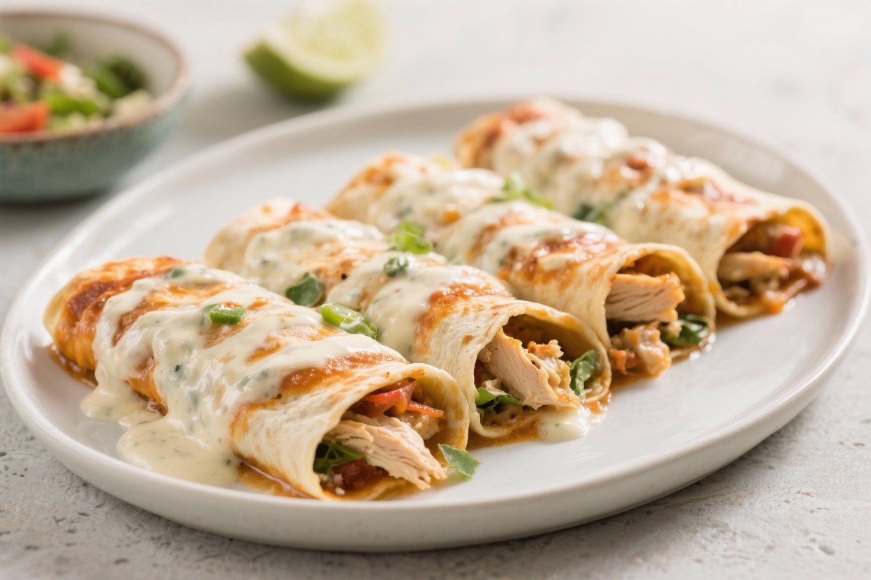 Skinny Creamy Chicken Enchiladas – Light, Cozy, and Flavor-Packed