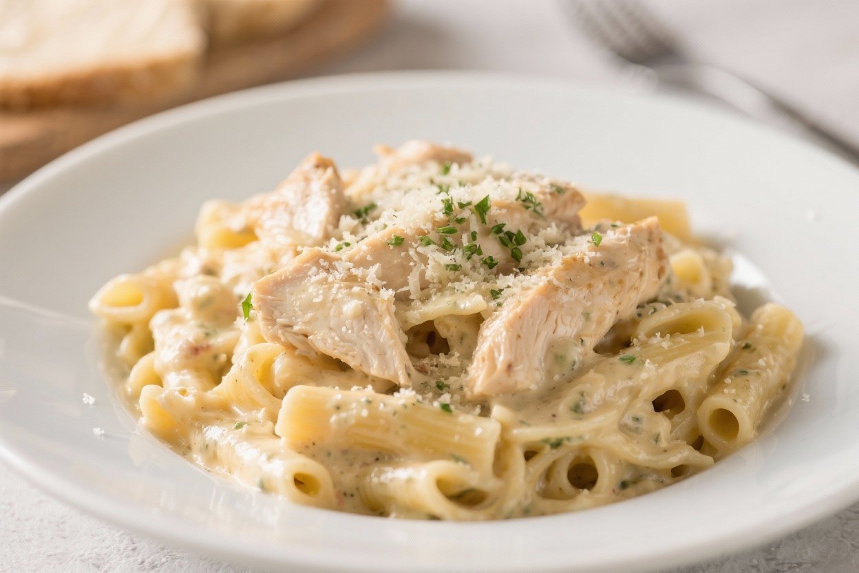 This is weeknight-easy, date-night-tasty. You get juicy, well-seasoned chicken, a creamy garlic-Parmesan sauce that’s velvety without being gluey, and pasta that doesn’t drown in cream but swims in flavor.